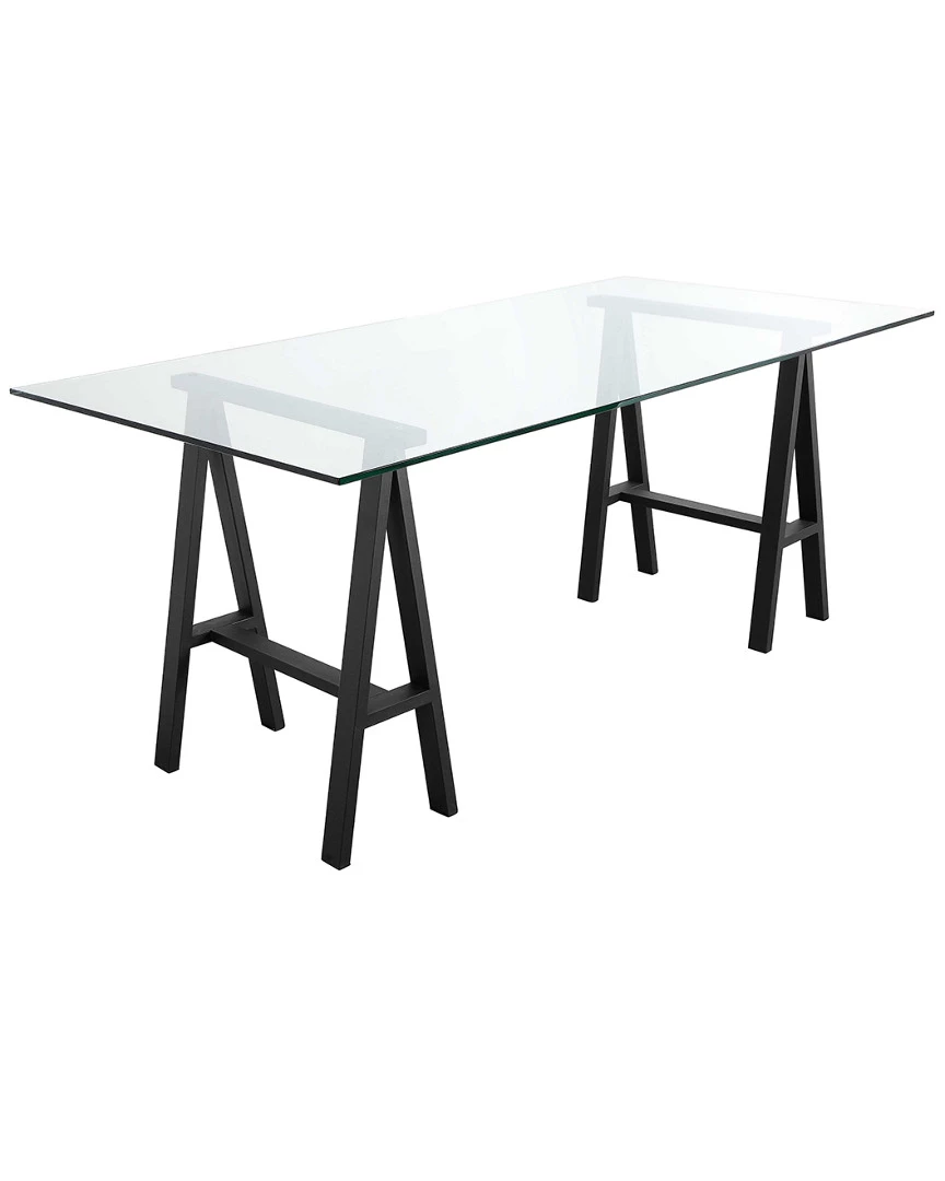 - Design details: Large modern glass top desk that can also be used as a dining table; high polished steel and tempered glass top