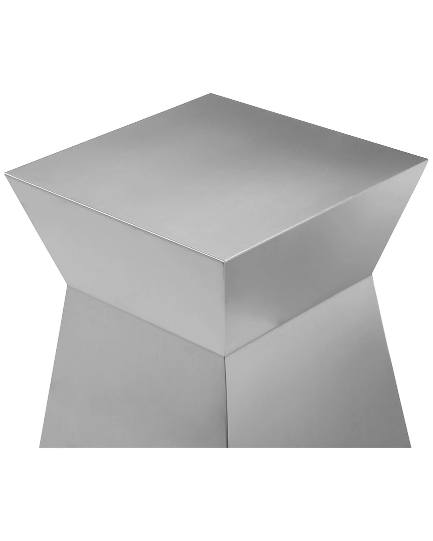 - Design details: Hourglass side table.A May be used as a seat nightstand side table or put 4 together and transform it into a coffee table. This piece can also be used as an accessory piece for any room or to fill up empty spaces; brushed steel