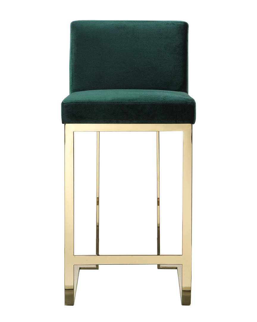 - Design details: Modern counter stool with steel foot rest. Seat Height is 26.” ; velvet with high polished steel
