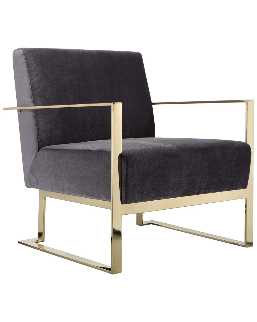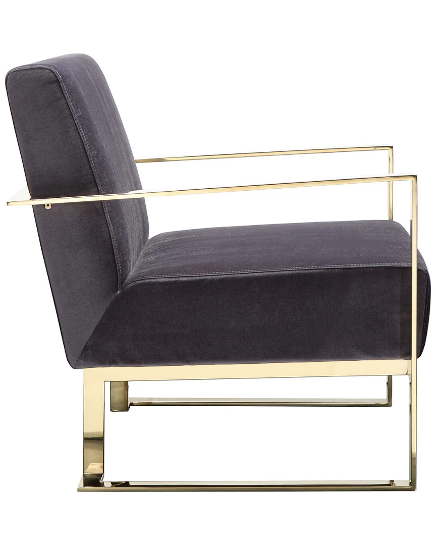 - Design details: Modern lounge chair with wrap around steel arms; Ideal for any room. Seat Height is 17.” Arm Height is 23″ ; velvet with high polished steel