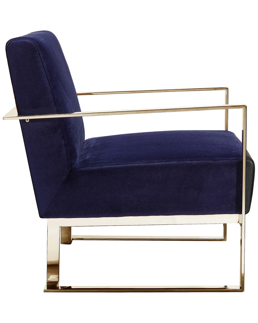 - Design details: Modern lounge chair with wrap around steel arms; Ideal for any room. Seat Height is 17.” Arm Height is 23″ ; velvet with high polished steel