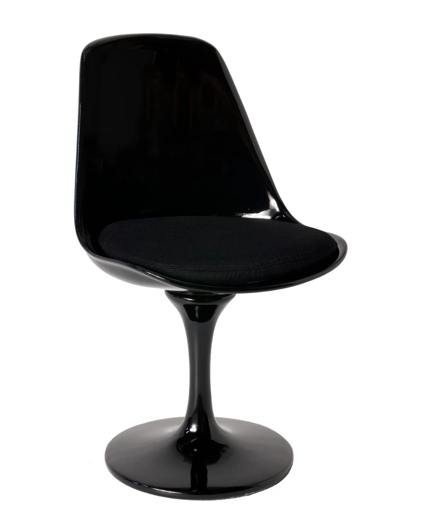 - Design details: Modern and clean dining chair with upholstered cushion. Chair rotates 360 degrees. ; fabric seat cushion with high gloss plastic and resin coated steel base