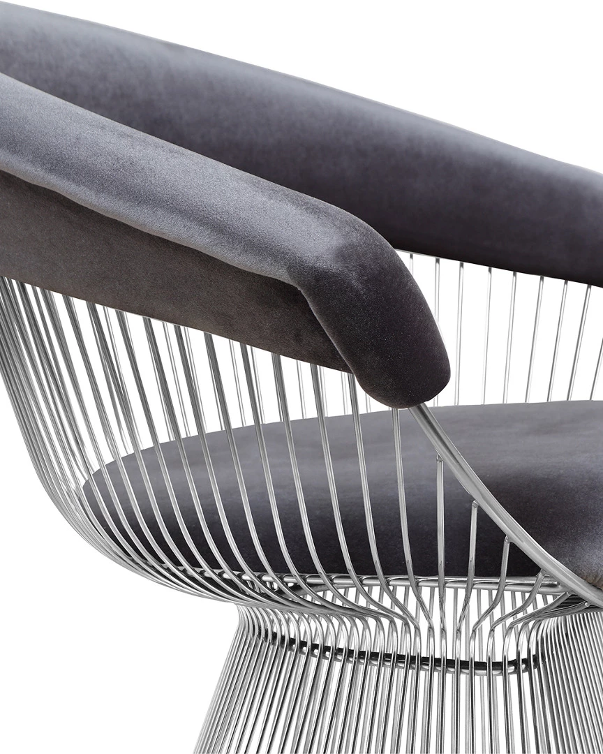 - Design details: Elegant and stunning mid-century iconic design. Ideal for use as dining office or lounge chair. Seat height is approx 17.5″; Seat depth is approx. 26.5″; Arm height is approx. 21.3″; back foam densit is 2.8 PCF (high density foam) and seat foam density is 2.50 PCF (high density foam); No assembly required; stainless steel frame; velvet