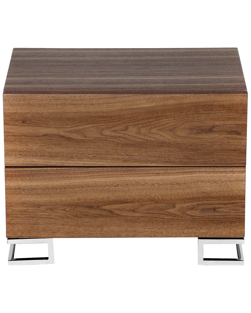 - Design details: Night stand with 2 drawers and steel legs.A A Inside drawer measuremes 17Wx10.5Dx4H; wood veneer with high polished steel legs