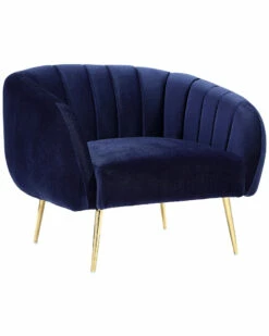 - Design details: Modern ribbed accent chair; Seat height is approx 15.7″; Seat depth is approx. 22″; Arm height is approx. 20″; foam density is 2 PCF (high density foam). Simple assembly required to assemble pre-assembled seat to legs; metal; velvet
