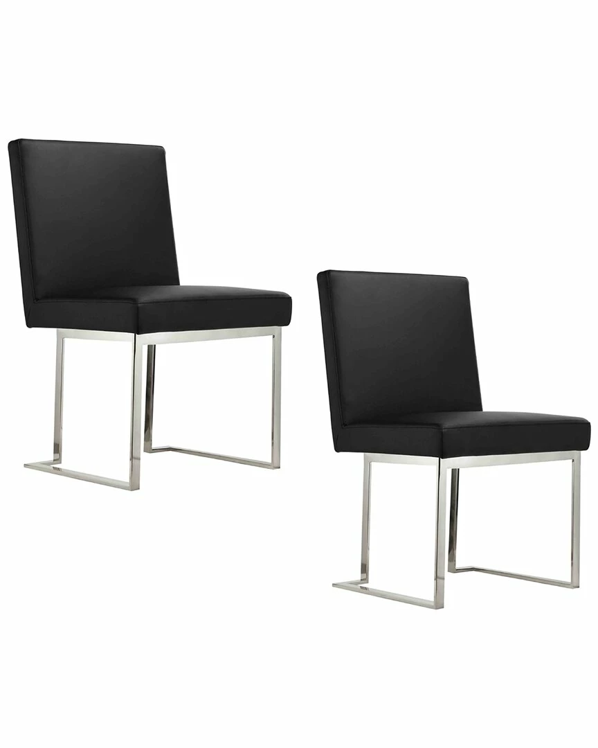 - Set of 2 dining chairs; Sleek and modern dining chair with silver steel legs and hardware; seat height is 18.5″