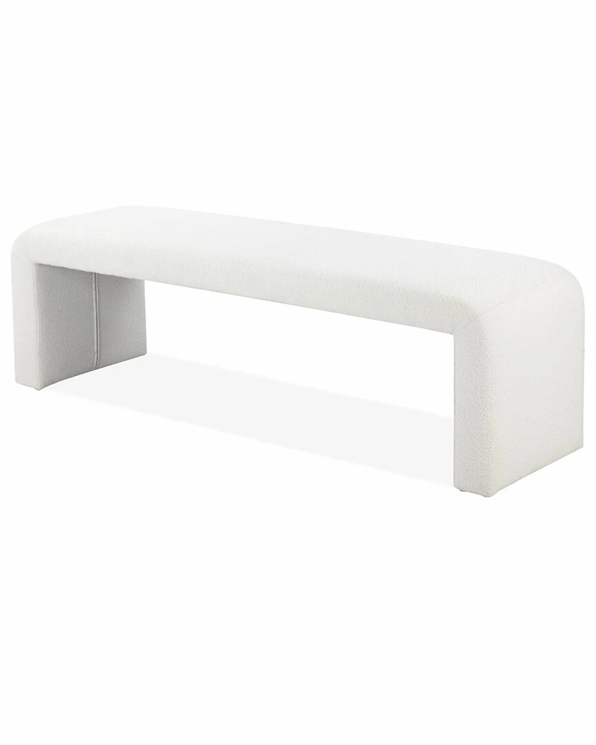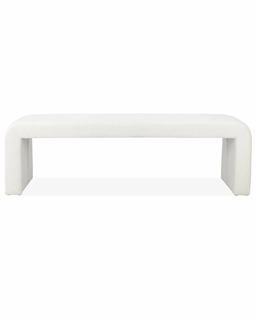 - Contemporary waterfall-style bench. This chic bench is uniformly upholstered; the seat and legs match.