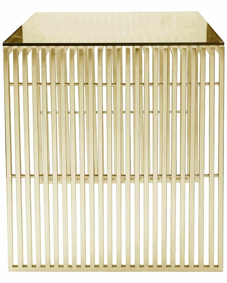 - Cool modern brushed gold steel desk with tempered glass top; edgy and modern