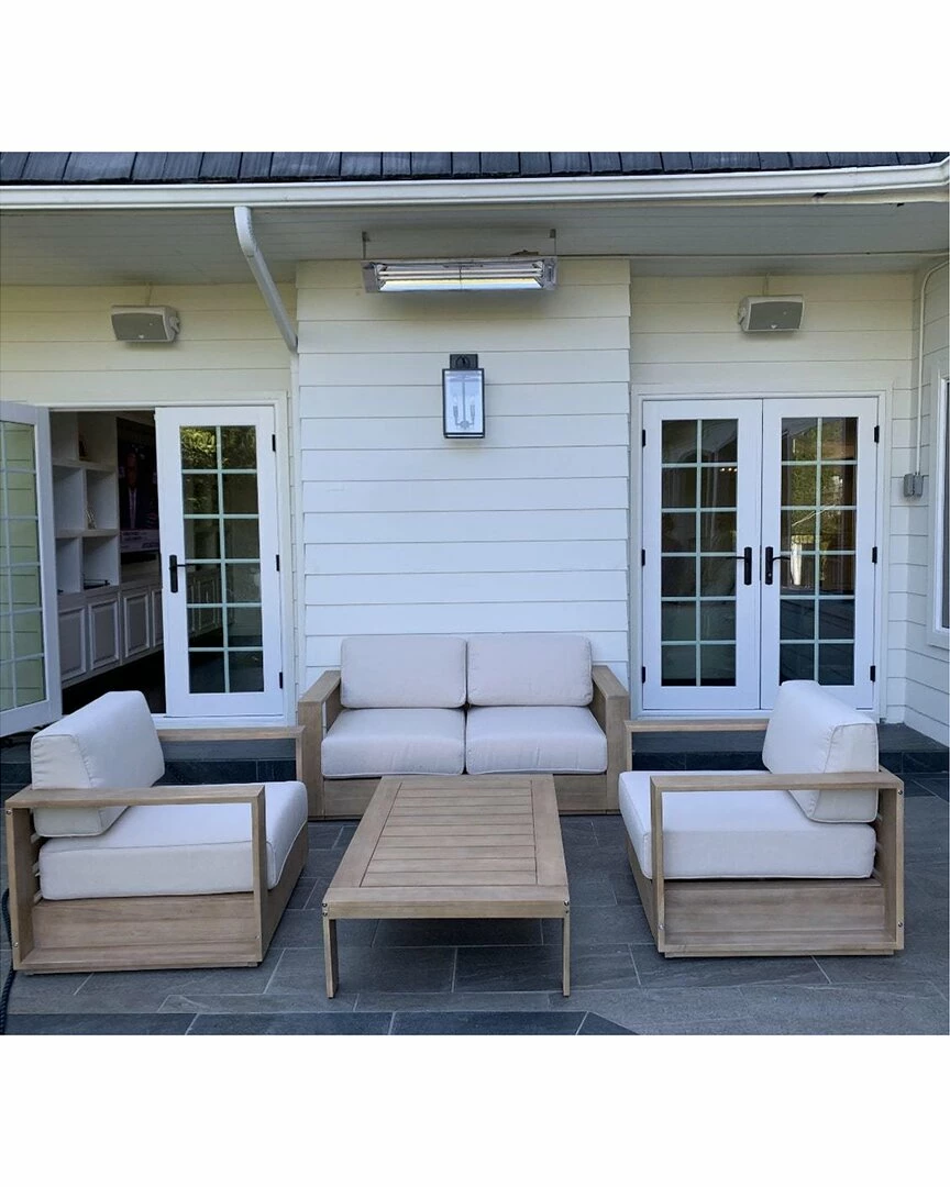 - Beautiful 4 piece sofa set that is made from durable acacia wood. Set incudes 2 one seater sofas, 1 love seat sofa and 1 coffee table. You will love this coffee table for its modern design and natural wood finish