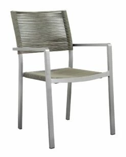 - Set of 6 stackable dining chairs. Chairs arrive assembled. You will love these chairs for its durable aluminum frame, rope seating and backing and modern design