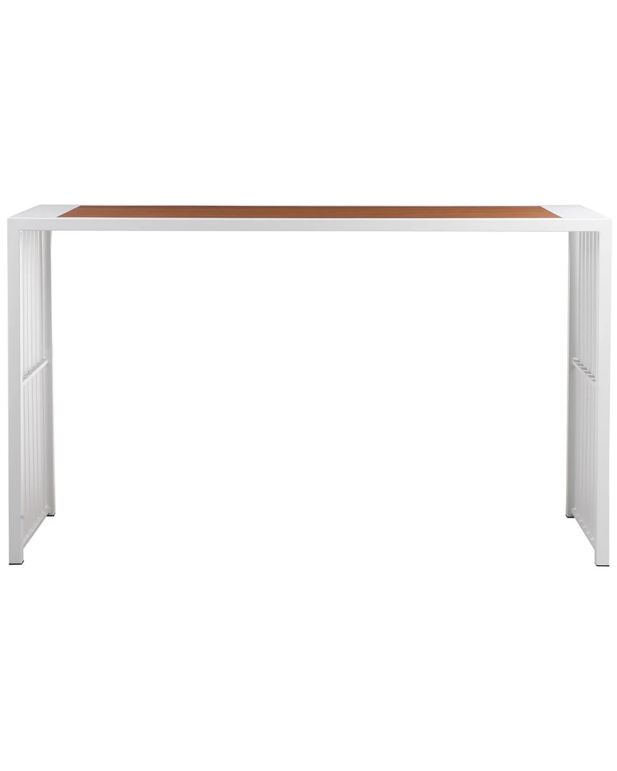 - Color/finish: white powder coated aluminum frame, white textilene, teak polyresin