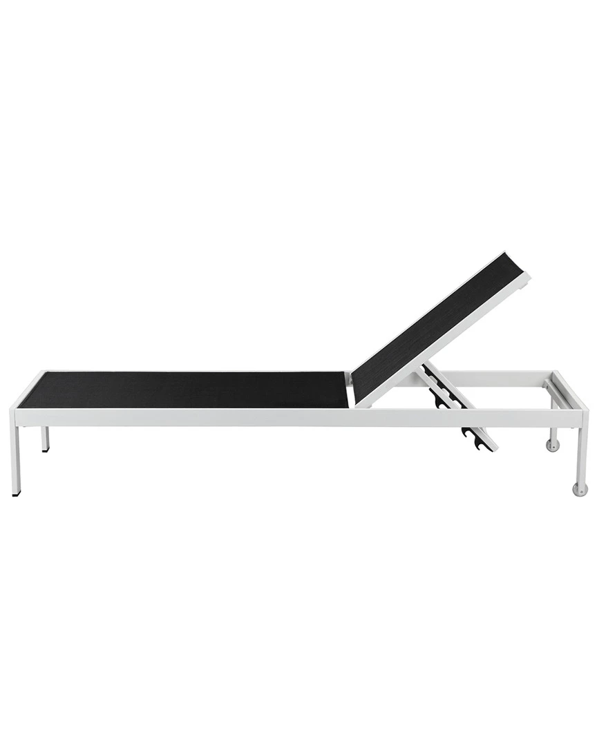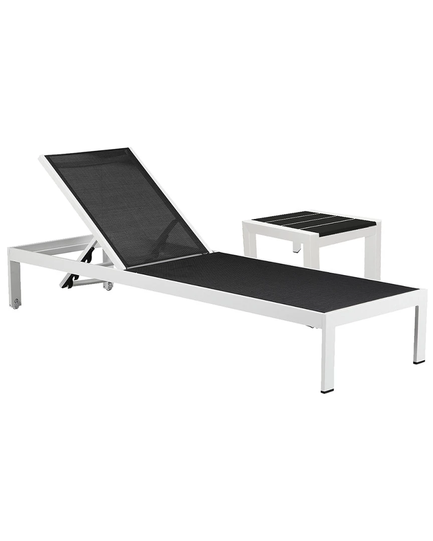 - Color/material: white powder coated frame, black textilene, black polyresin