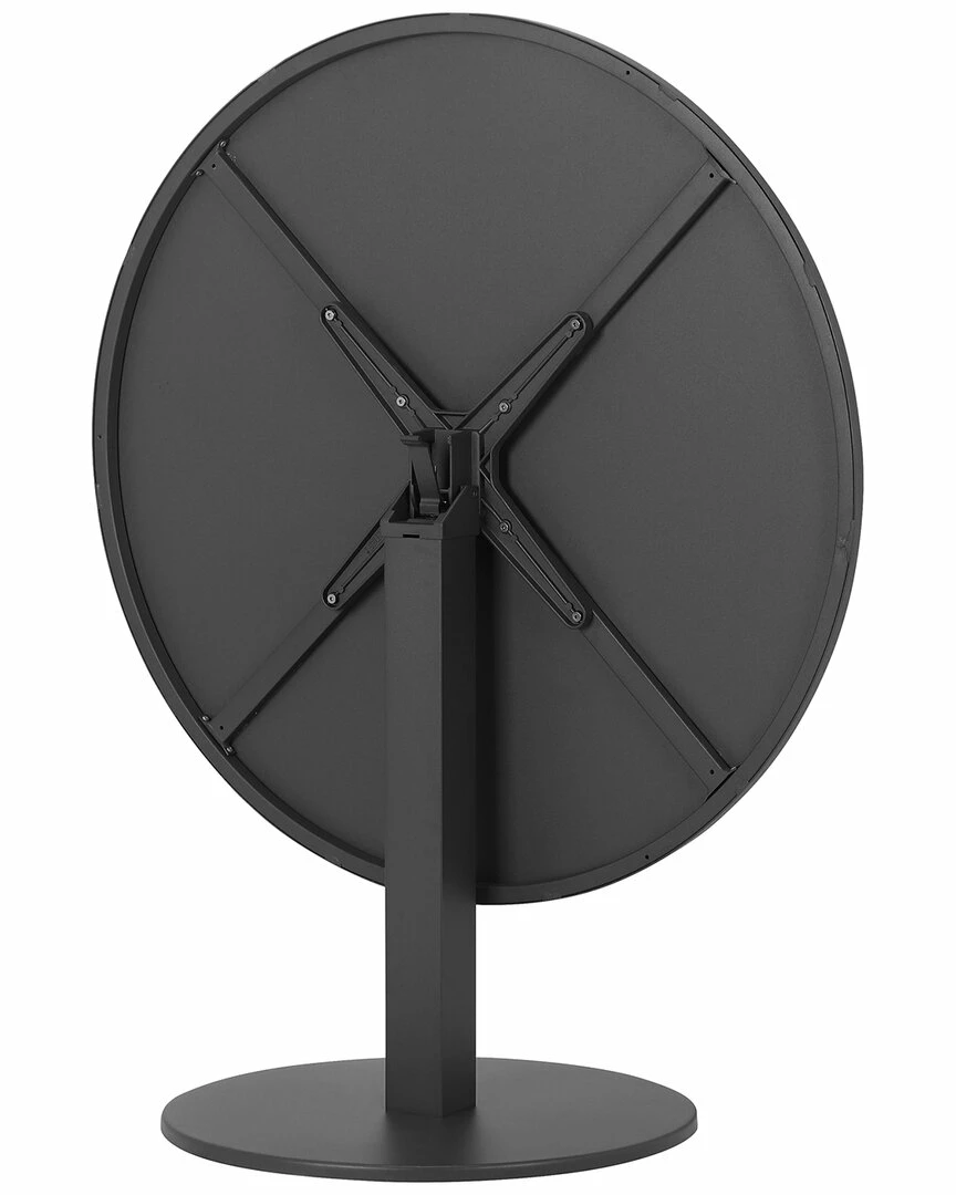 - Beautiful modern grey powder coated dining table. Table top folds side ways for easy storage.