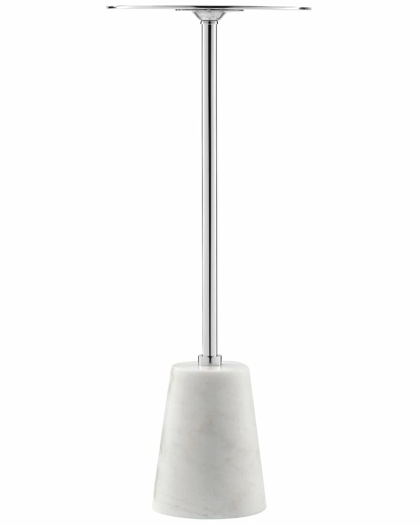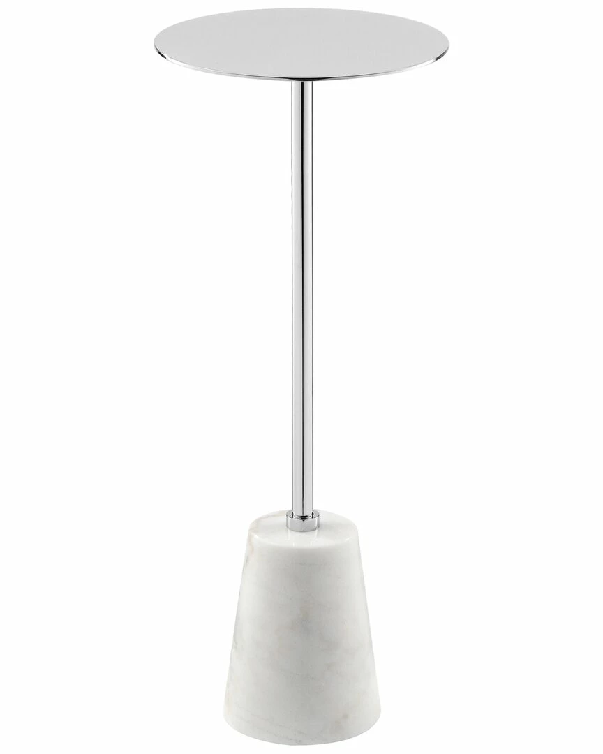- Relax with your favorite drink and this modern drink table with round high polished metal top and cone shaped marble base