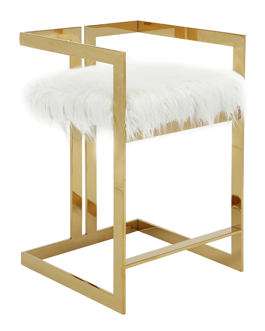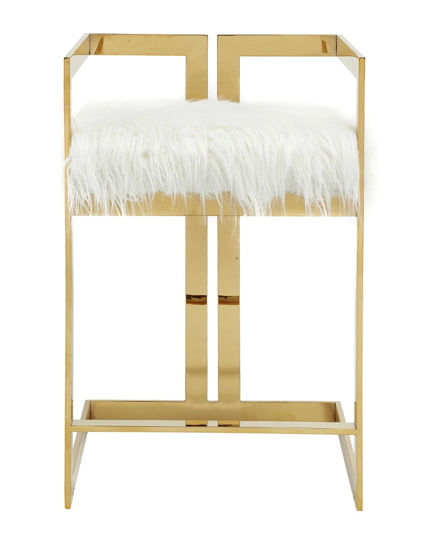 - Design details: Counter stool with clean lines simply make this a must have for every home. Seat height is approx 23.6″; Seat depth is approx. 18″; Arm height is approx. 28″; foam density is 2 PCF (high density foam); No assembly required; stainless steel; faux fur