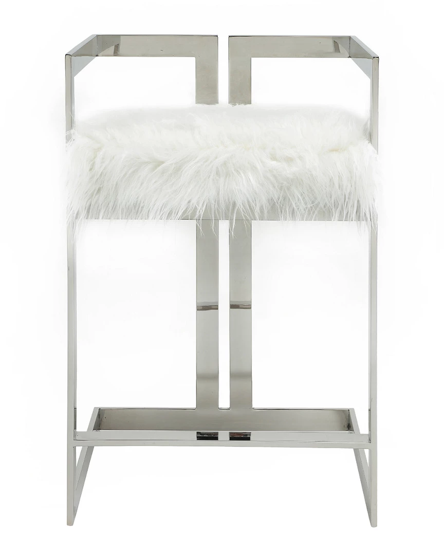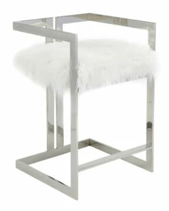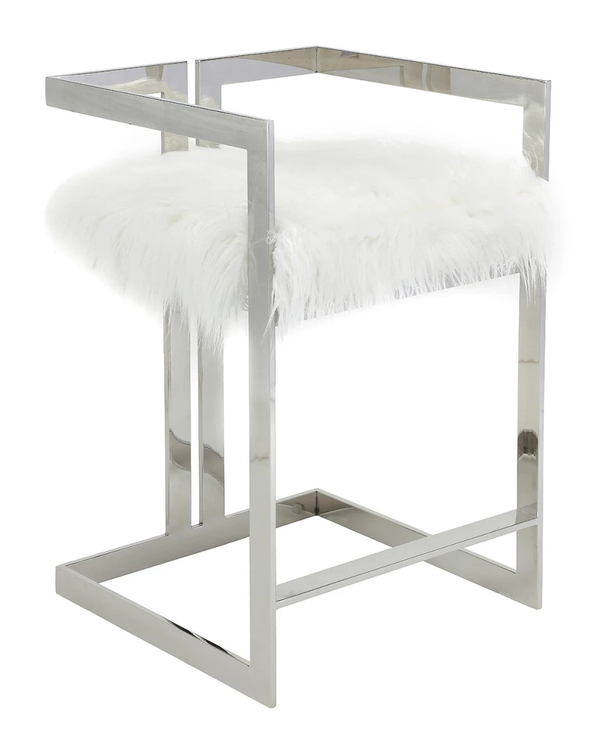- Design details: Counter stool with clean lines simply make this a must have for every home. Seat height is approx 23.6″; Seat depth is approx. 18″; Arm height is approx. 28″; foam density is 2 PCF (high density foam); No assembly required; stainless steel; faux fur
