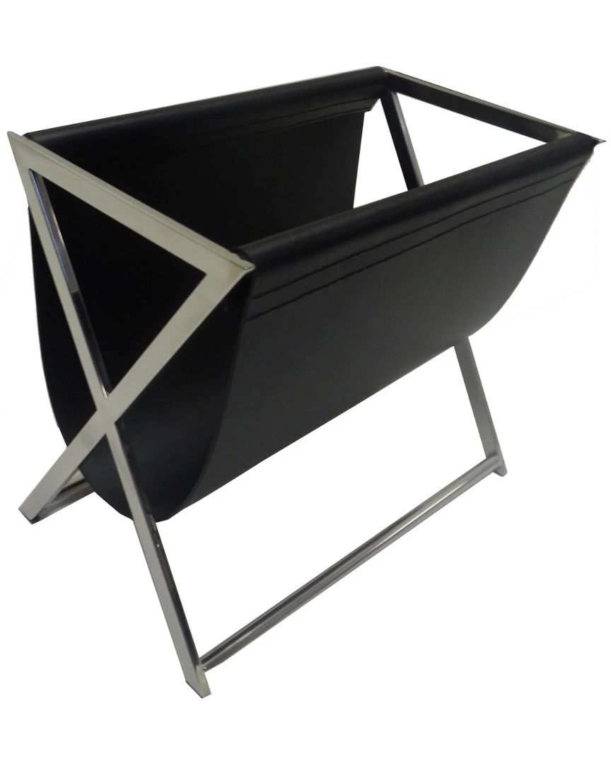 - Design details: Cool modern magazine holder for not just your magazines but for newspapers books etc. with X shaped steel legs; faux leather with high polished steel