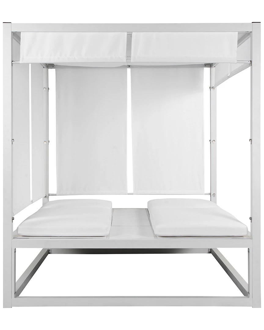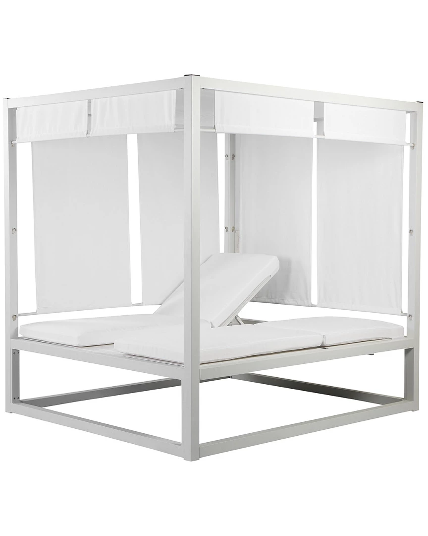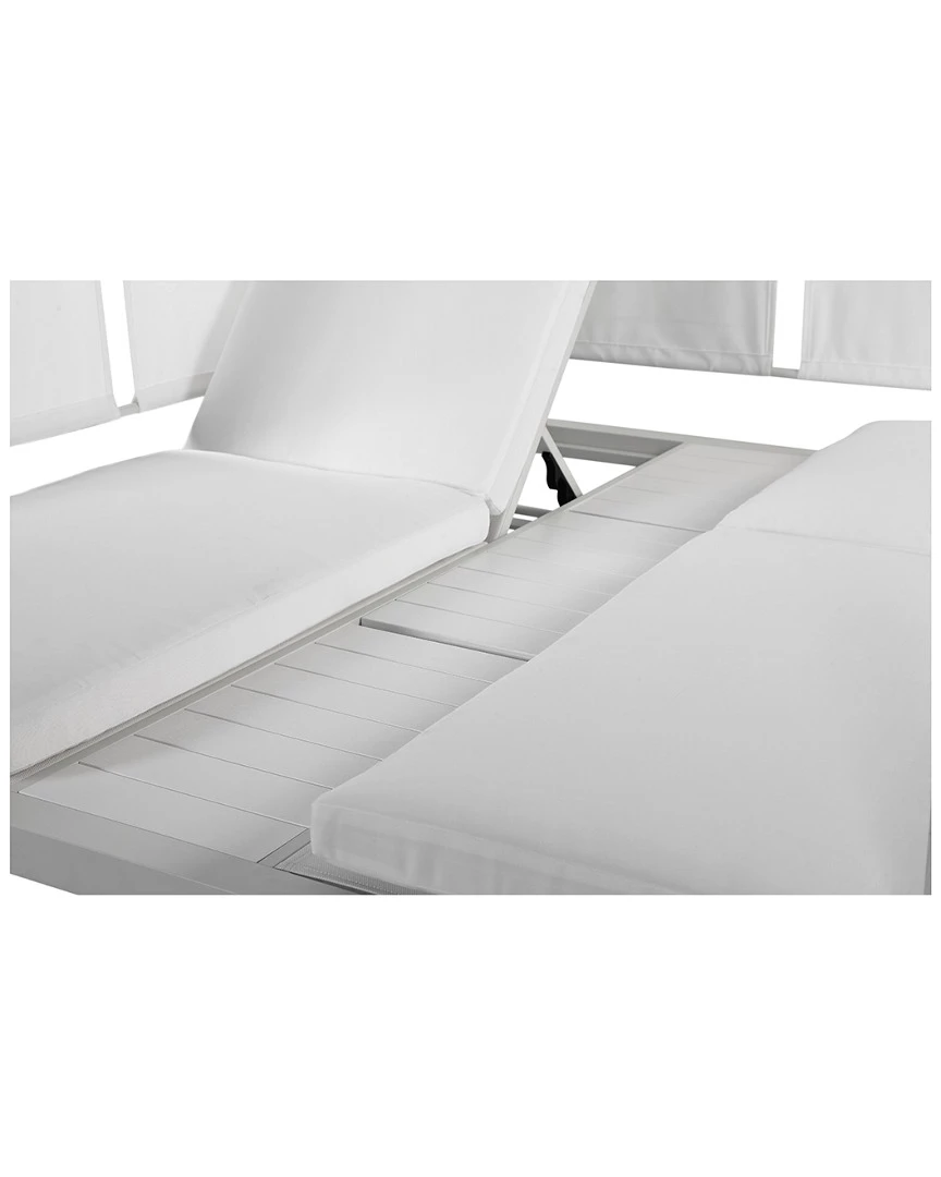 - Design details: This is the kind of daybed you see at the beaches of Mykonos or Los Angeles. Built from a white anodized aluminum frame, white cushions, white curtains and white adjustable tray table. This outdoor daybed is white hot. You will love this daybed for its aesthetically pleasing style, comfort, and durable material. So, call up a friend, adjust the curtains, pour drink and have some fun with your new outdoor daybed.