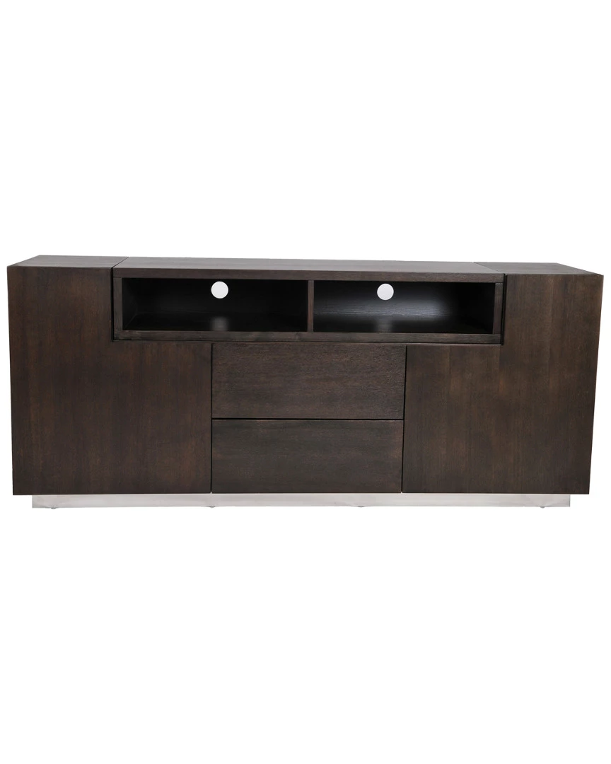 - Design details: A tall TV stand/media/buffet unit with 2 pull out soft close drawers 2 doors and 2 open components. Each open component measures 22Wx16Dx6H; Inside each drawer measures 21Wx15Dx6H; The inside door has a top and a lower compartment; the lower compartment measures 22Wx16Dx17H with 1 shelf and 3 different adjustable positions. The top compartment measures 10Wx16Dx8H. This item may also be used as a dining buffet; wood veneer