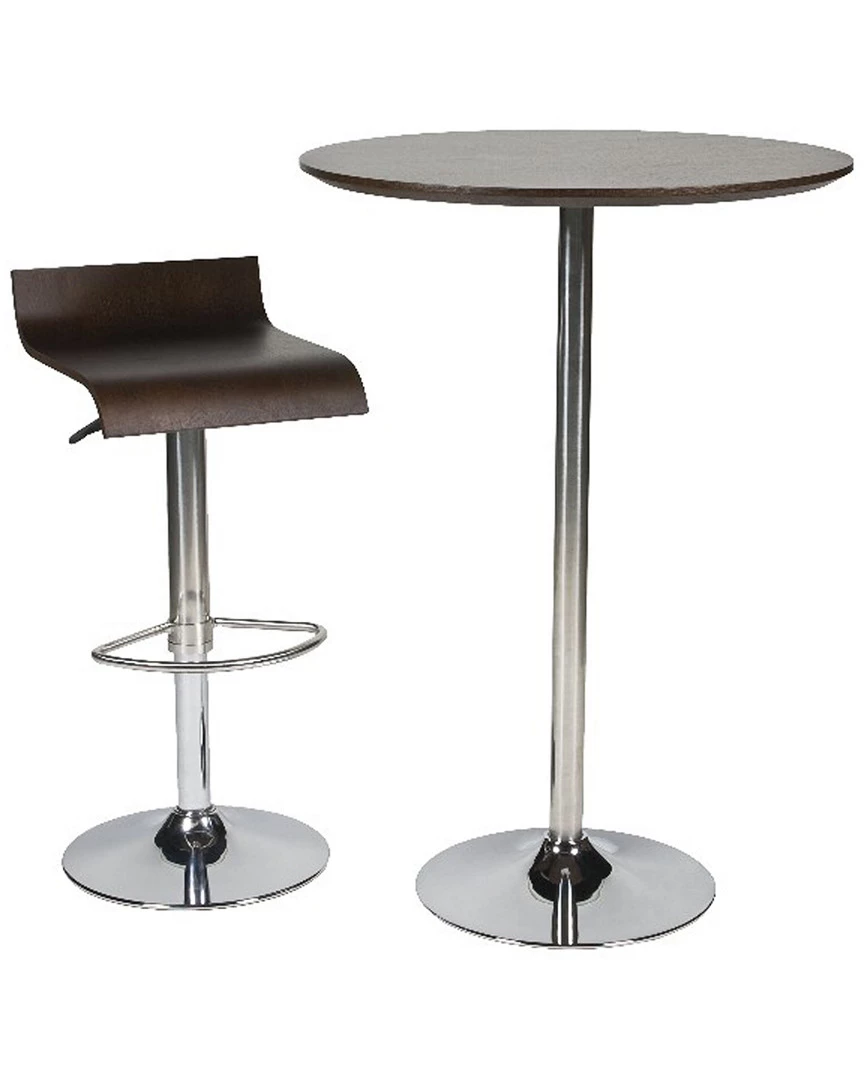 - Design details: Simple and modern round bar table top and round high polished steel base that is perfect with any bar height stool; wood veneer and high polished steel frame