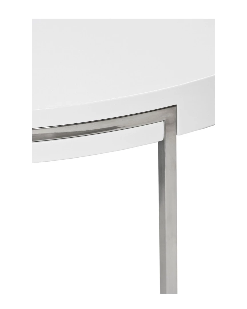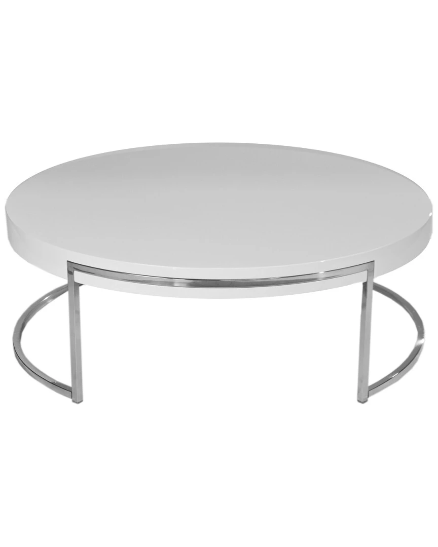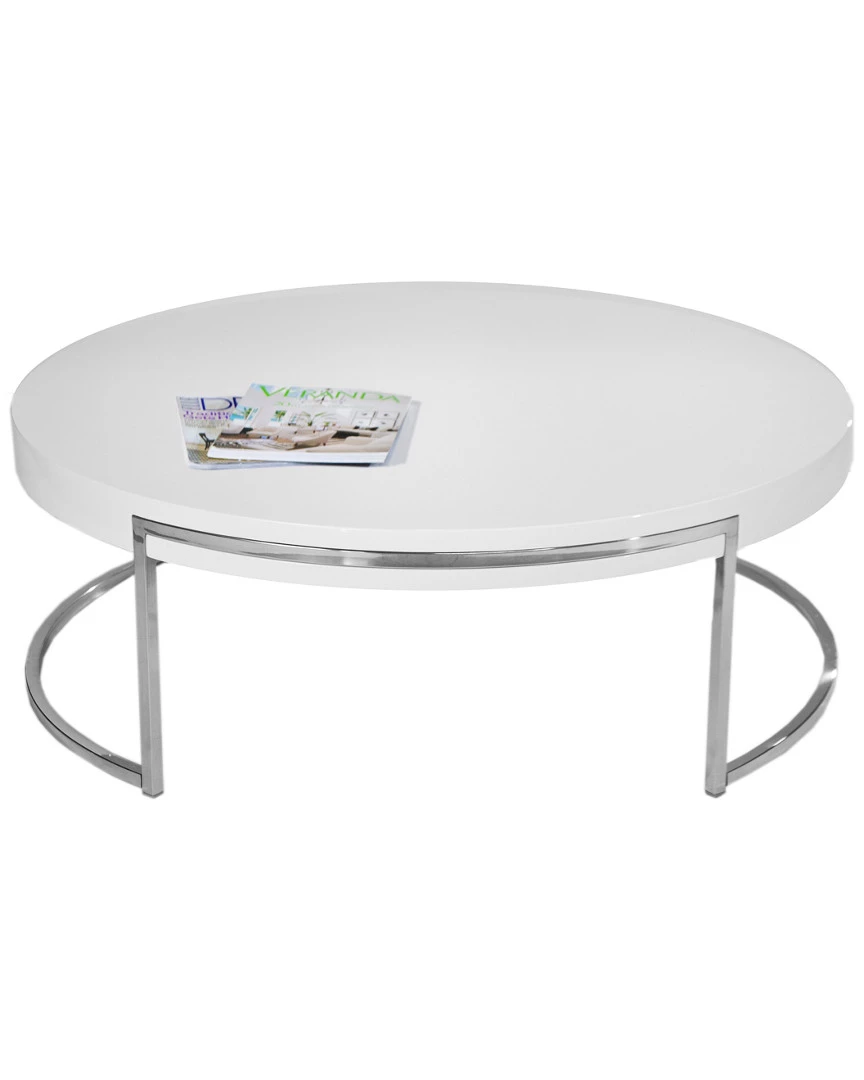 - Design details: Round coffee table with uniquly placed high polished steel legs. ; high gloss lacquer and high polished steel legs