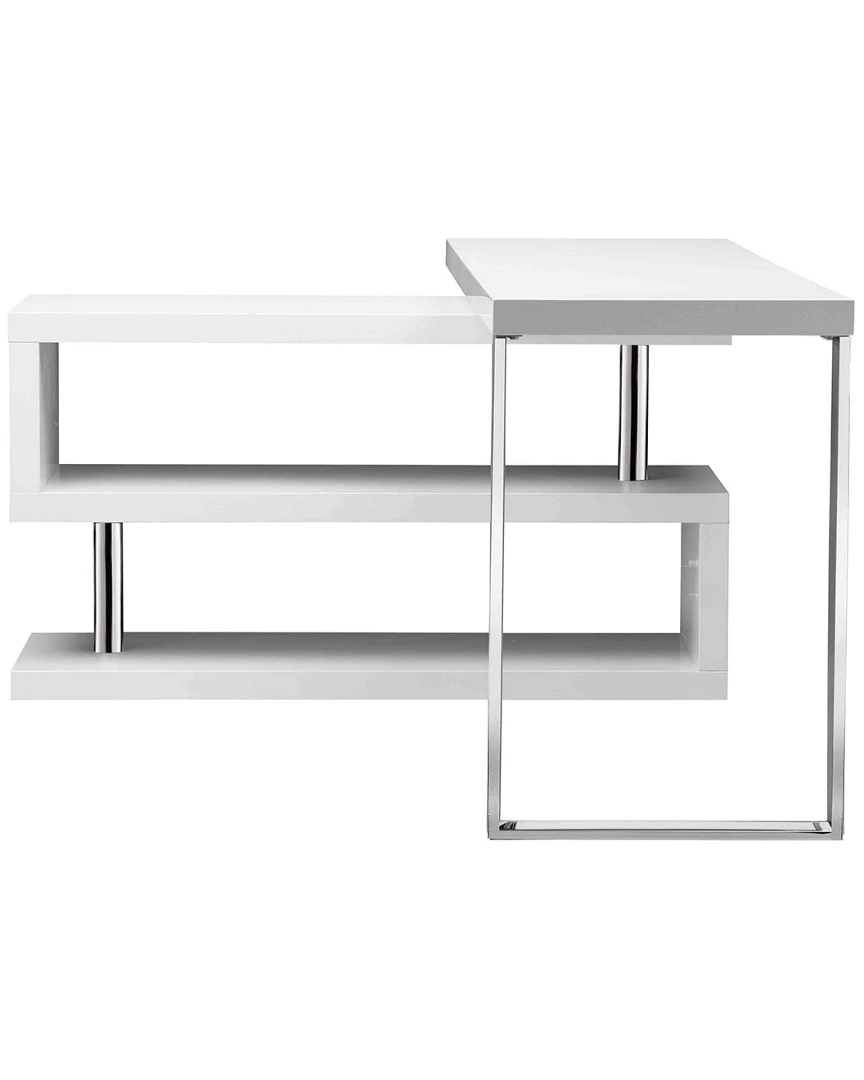 - Design details: Adjustable 2 part desk; writing part easily rotates 360 degrees; can be used as ony combination of a desk shelving or entertainment center; high gloss lacquer steel/metal