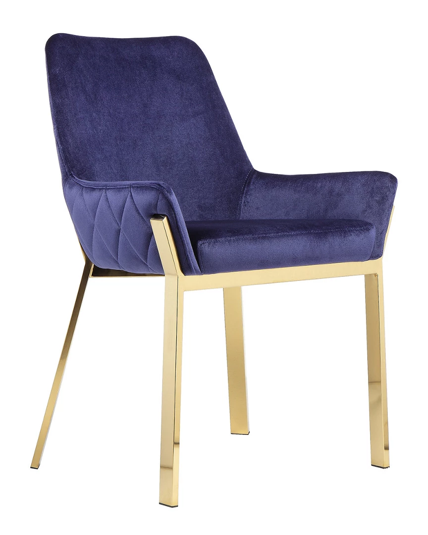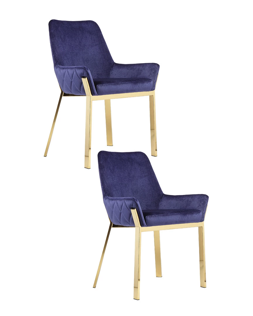 - Design details: Set of 2 diamond tufted chairs. Ideal use as dining office or lounge. Seat height is approx 19.3″; Seat depth is approx. 23.6″; Arm height is 23.3″; foam density is 2 PCF (high density foam). Simple assembly required to assemble pre-assembled seat to legs; stainless steel frame; velvet