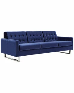 - Design details: Sleek and firm modern upholstered sofa. Minor assembly required. Seat height is 17.5; arm height is 22″; velvet with high polished steel legs