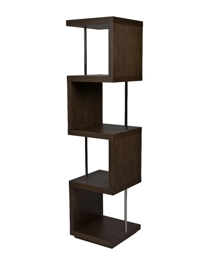 - Design details: Mutlifunctional five tier book shelf.A Narrow and tall. Ideal in the living room and/or bedroom. Inside each shelf measures 13Wx16D14H; wood veer with high polished steel frame