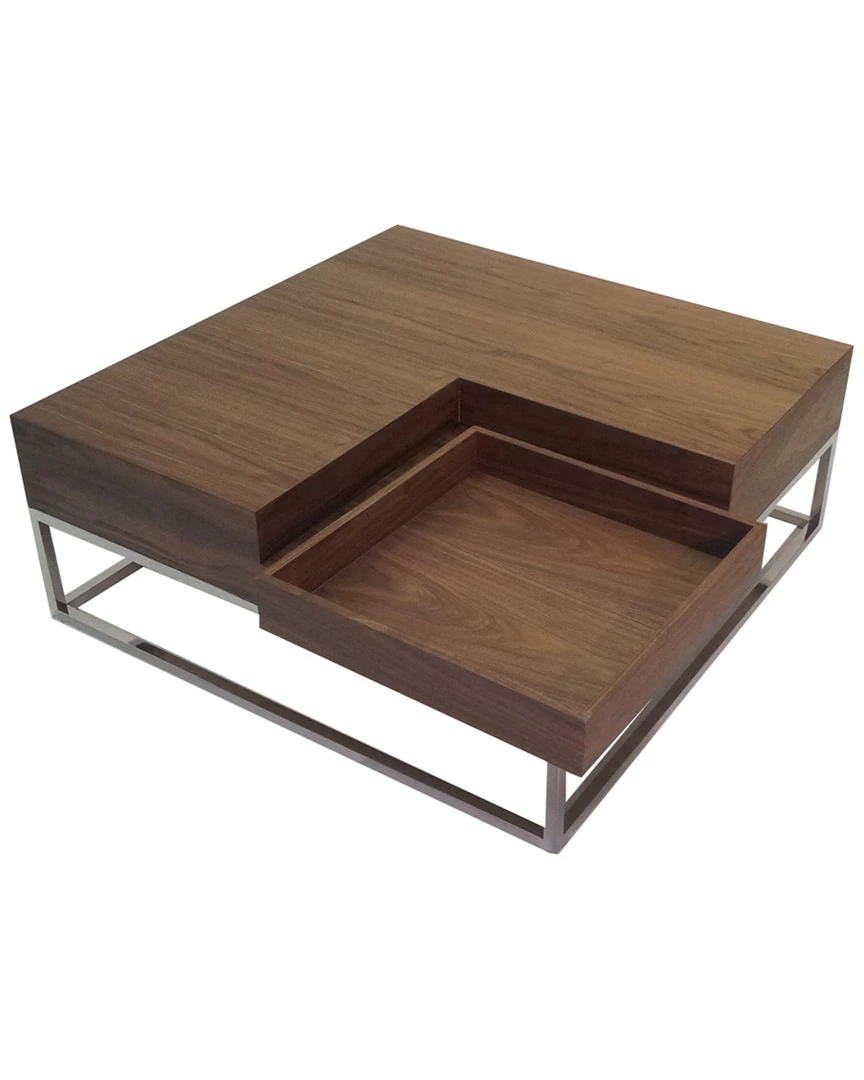 - Design details: Sleek and modern square coffee table with removable tray and hidden storage unit on the side; high polished steel frame legs and wood veneer top