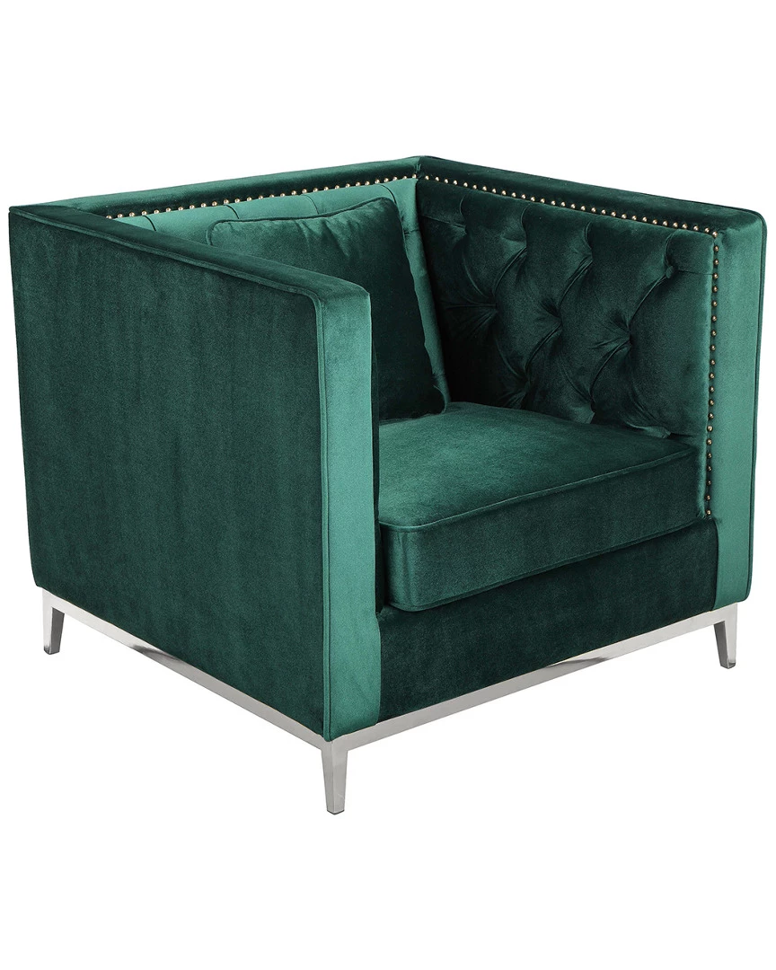 - Design details: Velvet tufted sofa chair with nail heads; modern meets glam; seat height is 18″; velvet with polished steel