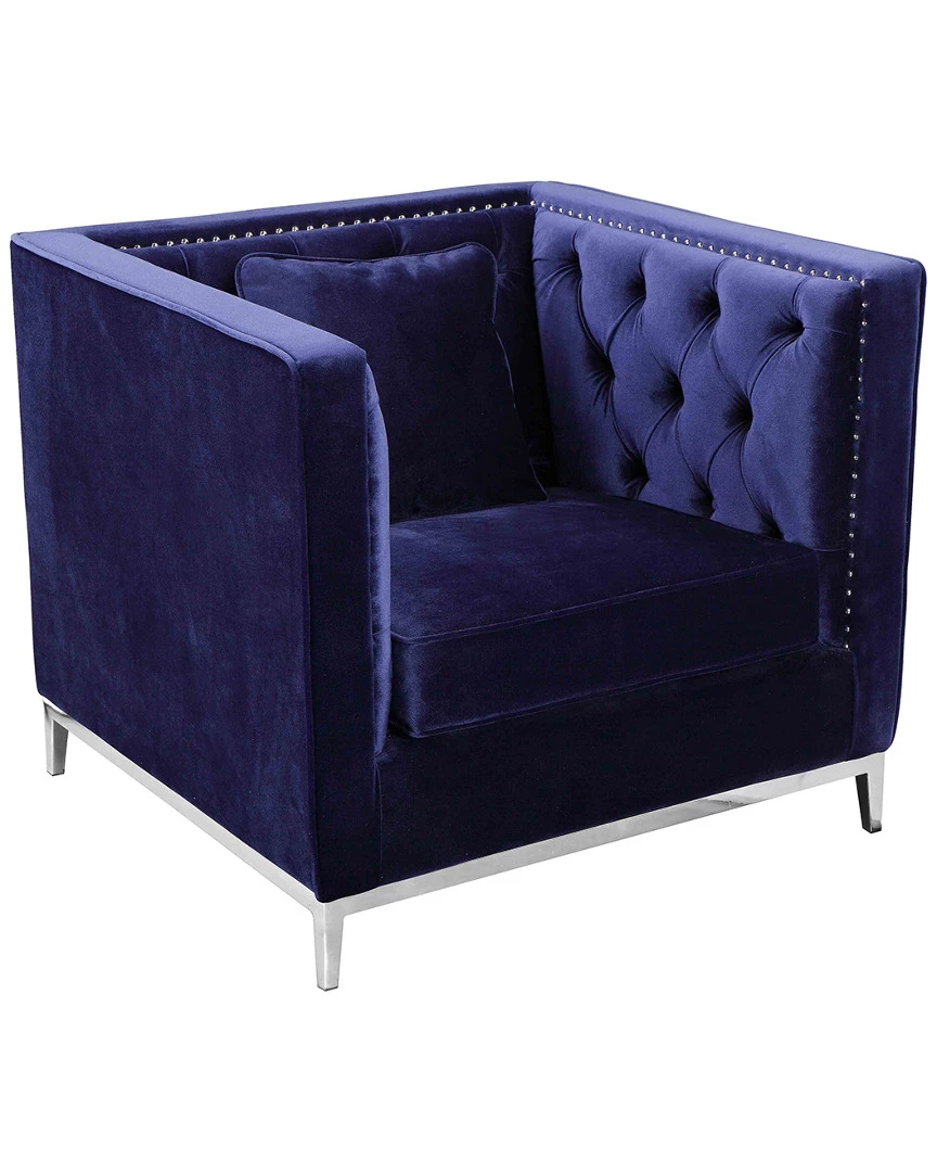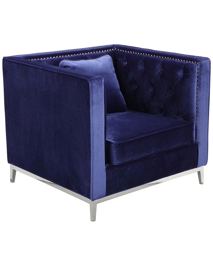 - Design details: Velvet tufted sofa chair with nail heads; modern meets glam; seat height is 18″; velvet with polished steel