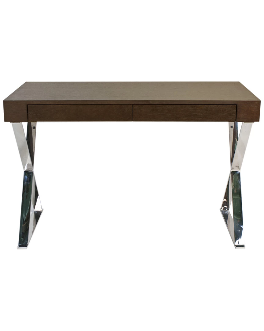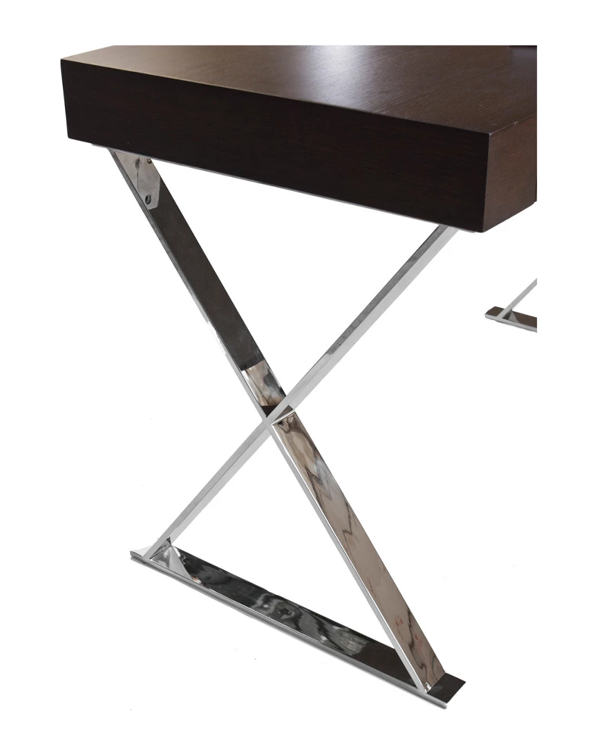 - Design details: Rectangular desk with two pull out drawers and X-shaped steel legs. It is finished on both sides. Inside drawer measures 17Wx15Dx1.5H; desk top including all drawers is fully assembled;; wood veneer with high polished steel legs